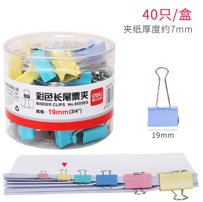 阳理斯办公 得力文具彩色长尾夹小中大号燕尾夹凤尾夹票夹书铁夹子办公用品8555ES